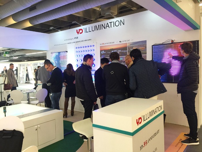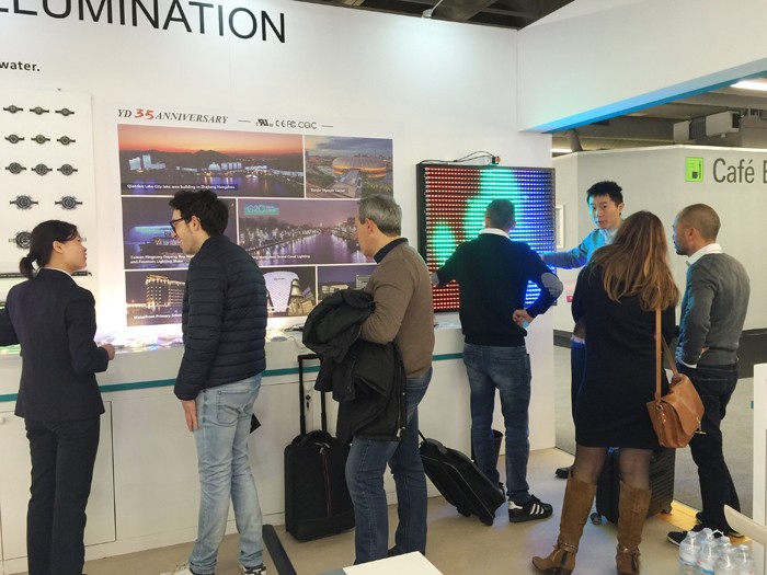與往年展位不同的是,今年勇電除了展示點光源、線條燈、大功率系列產(chǎn)品外,還將勇電旗下裝飾照明品牌——法拉沃系列燈具帶到了現(xiàn)場,各系列產(chǎn)品布局合理、清晰呈現(xiàn),向參展的客戶展示著優(yōu)勢和吸引力。