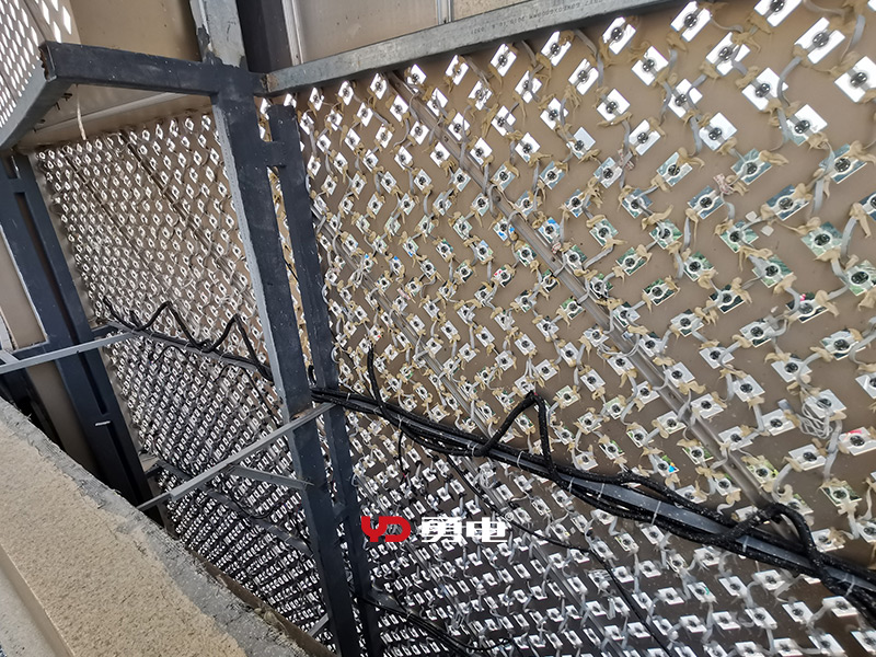 商場主入口采用勇電Φ40點光源打造了一塊面積達570平方米的大型戶外LED廣告屏,樓體周圍采用勇電Φ30點光源打造了12塊小型戶外LED廣告屏,整個戶外LED媒體立面總面積達到1110個平方。